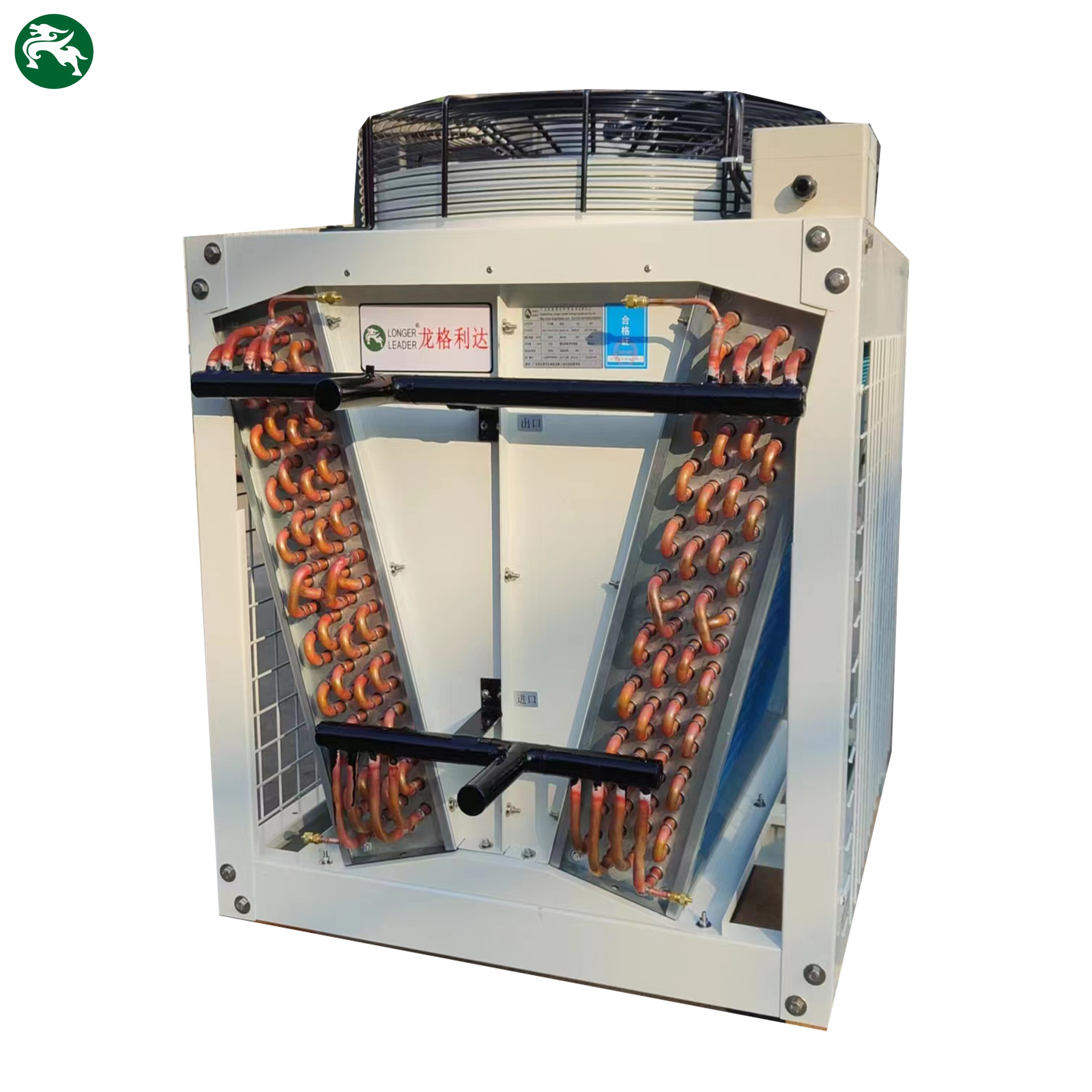 A dRy chłodniczejest to samo co chłodzona powietrzem jednostka kondensacyjna, ale wykorzystuje niektóre płynne roztwory, takie jak woda, glikol etylenowy/woda, do przenoszenia i zastępowania czynnika chłodniczego i sprężarki.
